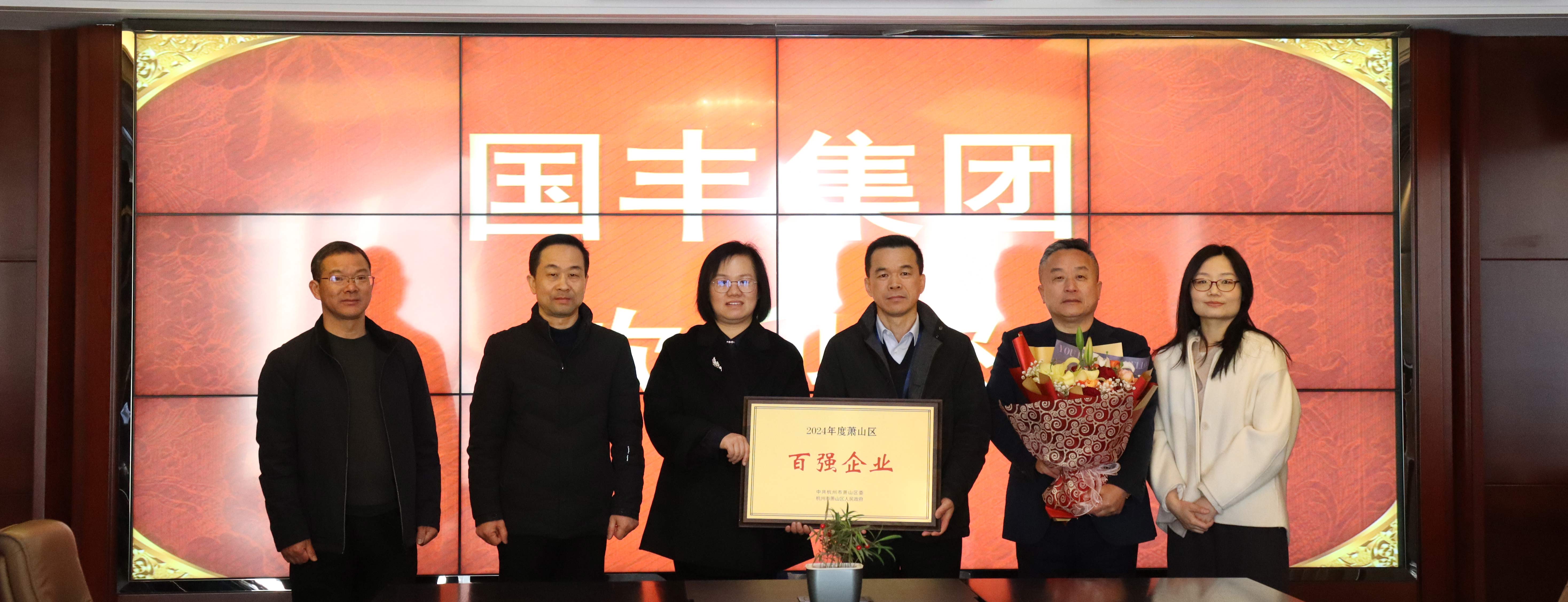 區(qū)住建局領(lǐng)導(dǎo)走訪國豐集團(tuán) 頒發(fā)“蕭山區(qū)百強(qiáng)企業(yè)”獎牌